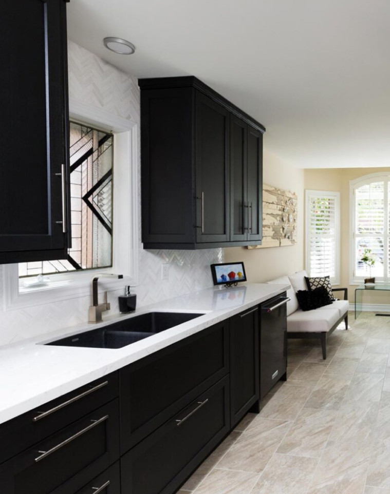 - All base cabinetry with drawers, and doors only where it makes sense—under sinks, for garbage and other pullouts.