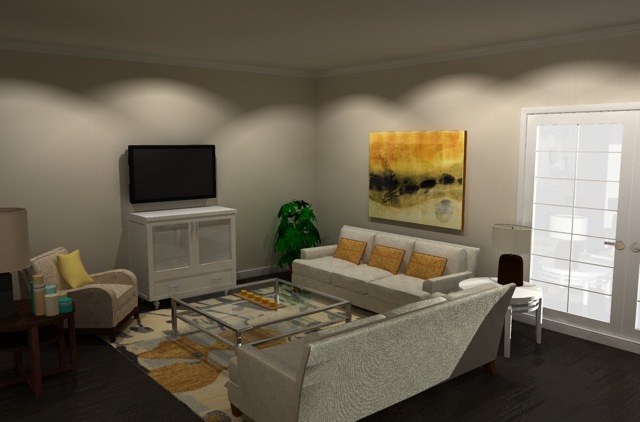 3D Renderings are a wonderful tool to help you see your new space before the work has begun. With the click of a button, I can easily make changes to fabric, wood, paint stains, and wall colour.